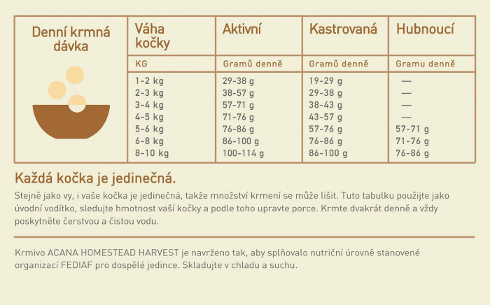 ACANA HOMESTEAD HARVEST CAT je kompletné krmivo pre dospelé mačky všetkých plemien. Obsahuje mäso z voľne chovaných kurčiat a moriek, voľne loveného sleďa, obsahuje nízkoglykemické obilniny. Kvalitné živočíšne proteíny a omega 3 prispievajú k výbornej kondícii mačky. 65 % MASA | 1/3 ČERSTVÁ