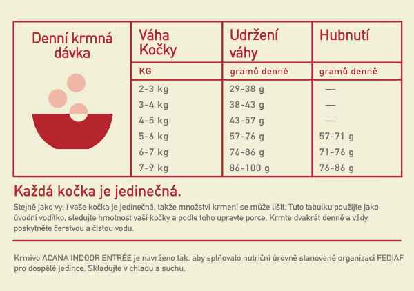 ACANA INDOOR ENTREÉ CAT je kompletné krmivo pre kastrované mačky a dospelé mačky všetkých plemien pohybujúcich sa v domácnosti. Obsahuje mäso z voľne chovaných kurčiat, moriek, králikov a voľne loveného sleďa, obsahuje nízkoglykemické obilniny. Kvalitné živočíšne proteíny a omega 3 prispievajú k výbornej kondícii mačky. 65 % MASA | 1/3 ČERSTVÁ