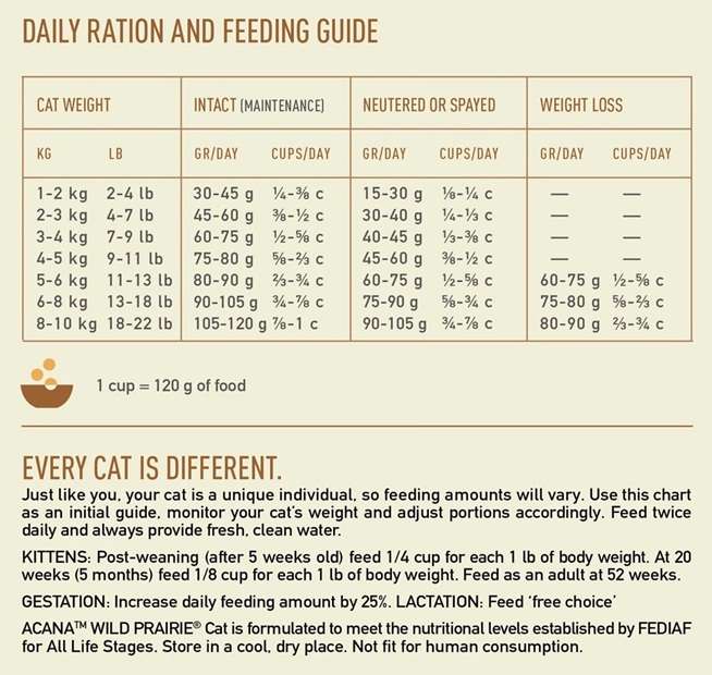 ACANA WILD PRAIRIE CAT GRAIN-FREE je kompletné krmivo pre dospelé mačky všetkých plemien. Obsahuje mäso z voľne chovaných kurčiat a moriek a voľne lovených rýb. Kvalitné živočíšne proteíny a omega 3 prispievajú k výbornej kondícii mačky. 75 % MASA | 1/2 ČERSTVÁ