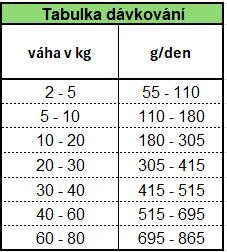 Zloženie: Mäso a vedľajšie produkty živočíšneho pôvodu a vyvážená zmes obilnín, olejov, tukov, minerálov a kvasníc.