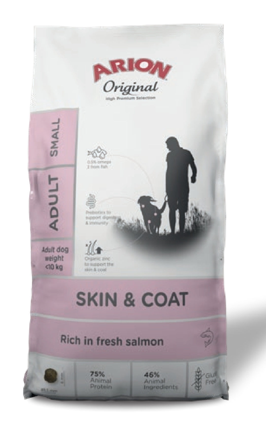 Arion Original Skin&Coat je kompletné krmivo pre dospelých psov. Bezlepková receptúra na báze ryby obsahuje unikátnu kombináciu morských surovín a organický zinok na podporu kože a srsti vášho psa.