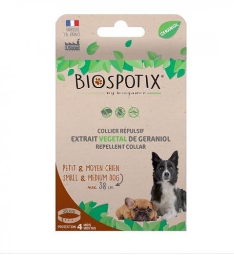Charakteristika Obojok BIOGANCE Biospotix Prevencia napadnutia zvieraťa vonkajšími parazitmi. Repelentný obojok pre psy proti blchám, kliešťom a komárom s obsahom rastlinného roztoku geraniolu, s ochranou proti napadnutiu do 4 mesiacov.