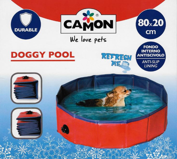 Bazén plný sviežosti pre vášho štvornohého kamaráta! Dokonca aj štvornohí priatelia môžu trpieť vysokými teplotami! Ale teraz, vďaka tomuto setu chladiacich hračiek a doplnkov od Camonu, ponúkate pre vášho psa životaschopnú alternatívu k vysokým teplotám v najteplejších dňoch. Tento priestranný bazén je navrhnutý pre osvieženie vášho zvieraťa. Rozmery 80x20 cm