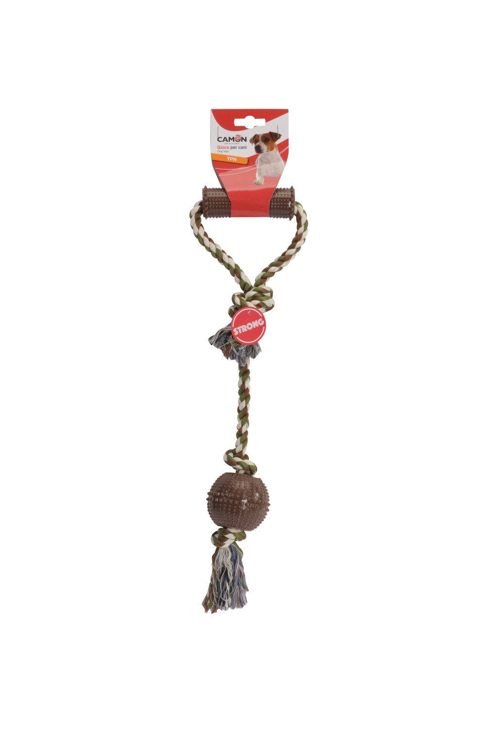 Zábavná a odolná lanová / bavlnená hračka pre psov, s guľôčkou TPR a tiež rukoväťou s rukoväťou.