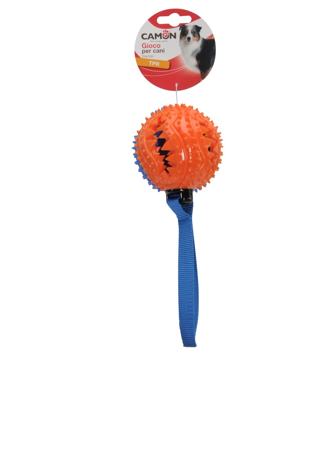 Zábavná dvojfarebná tpr lopta s vnútorným pískadlom a látkovou rukoväťou.