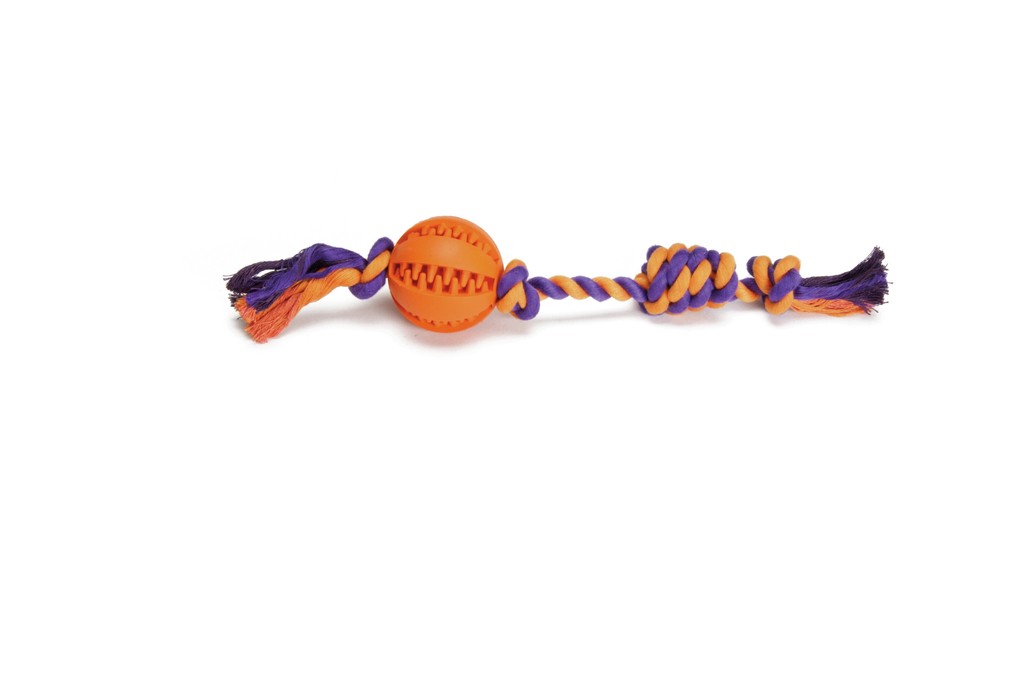 Tieto hry, robustné a odolné, urobia šťastie vašim štvornohým, ktorý sa môže zabaviť s touto zábavou pozostávajúcou z reprodukcie kosti vďaka tkanej bavlne a gumenej guli v strede, ktorej tvar tiež pomôže vyčistiť zuby zvieraťa.