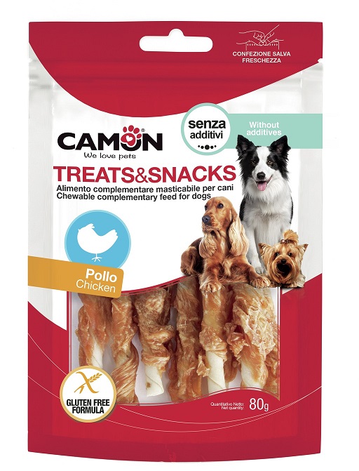 Camon Treats&Snacks Snacks Rolky zo surovej kože s kuracími prsami-doplnkové krmivo pre dospelých psov.