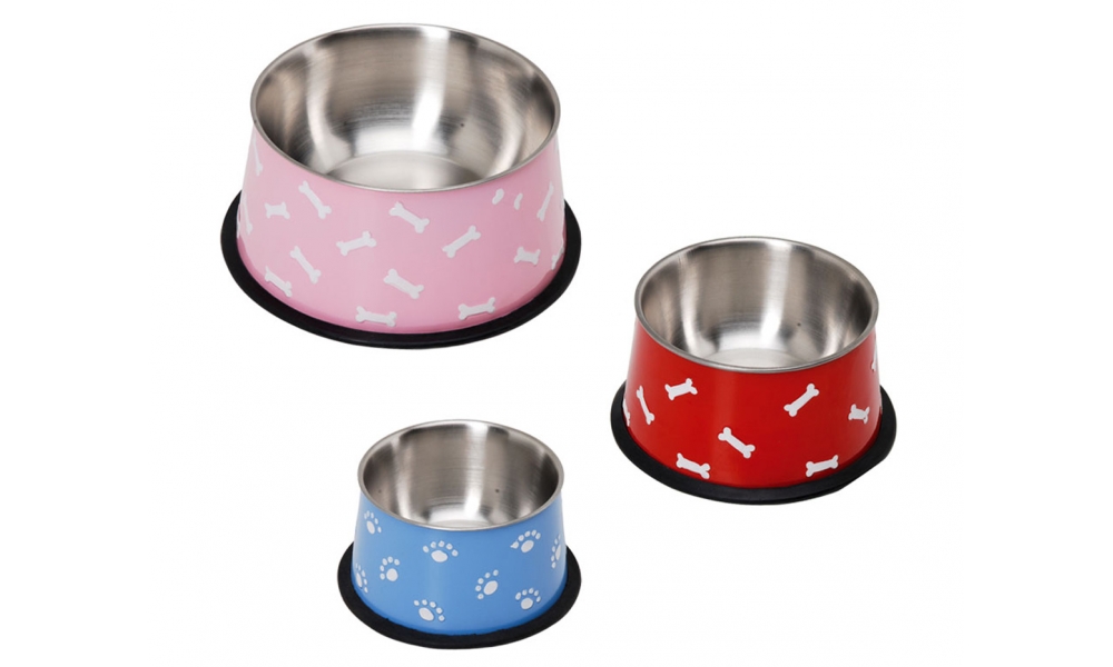 Oceľová miska s farebným poťahom a dekoráciami.