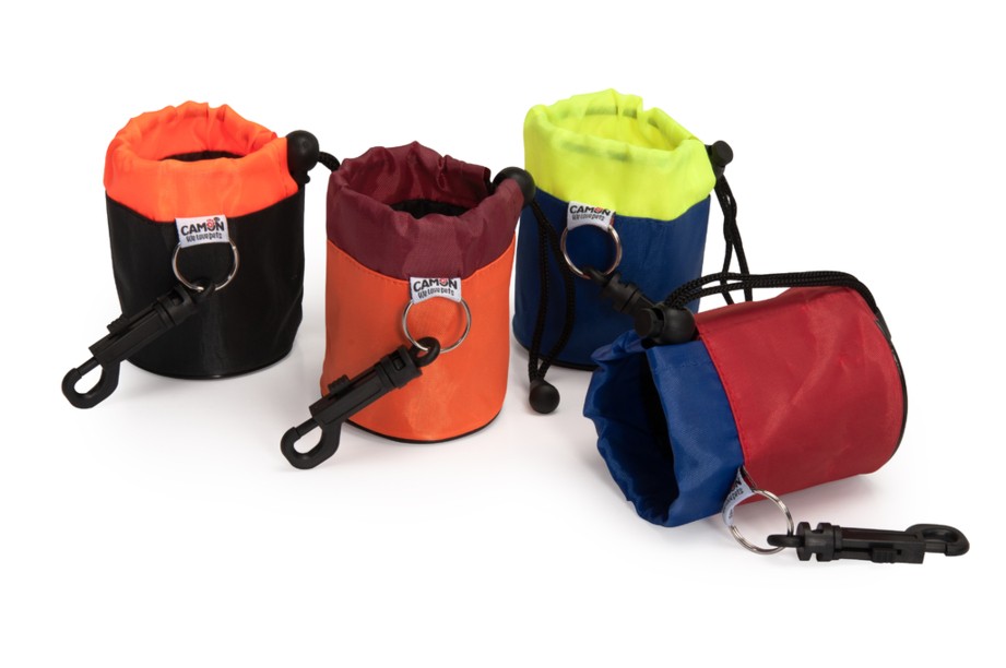 Tento praktický pamlskovník je vybavený bočnou karabínou, ktorá umožňuje jeho jednoduché pripevnenie k pútku na opasok a funkčným systémom zatvárania.