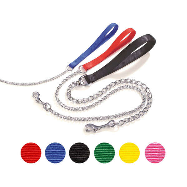 Retiazková vôdzka pre psa s červenou nylonovou ručkou.