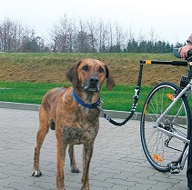 vziať psa na prechádzku v úplnej bezpečnosti a pohodlí: - veľmi ľahko sa aplikuje, zaručuje stabilitu a necháva psa voľne bežať po vašom boku bez rizika zasahovania do kolies alebo pedálov: