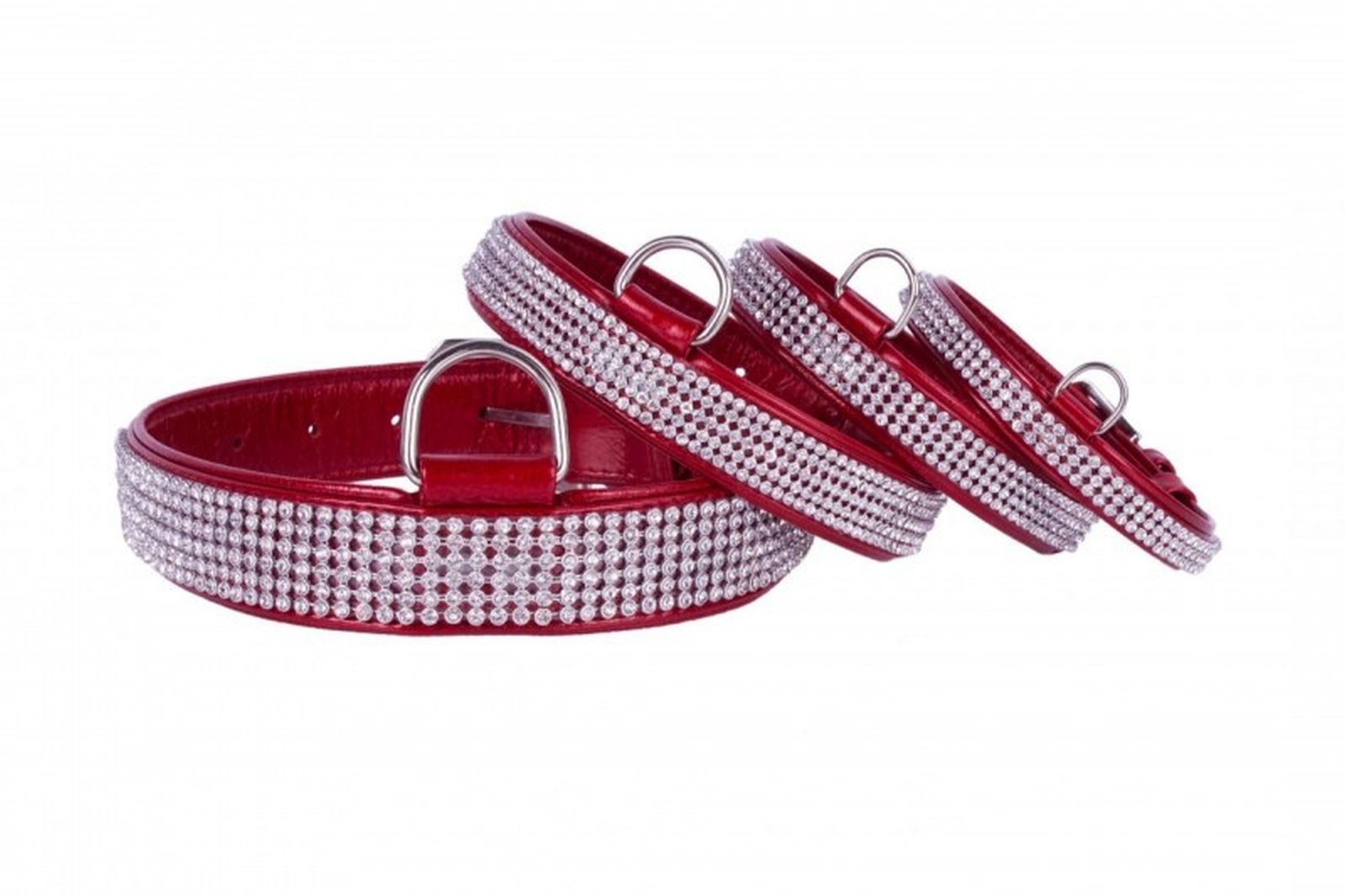 Atraktívne obojky z prírodnej kože zdobené kamienkami. Tieto obojky sú súčasťou našej kolekcie s kryštálmi a stanú sa štýlovým doplnkom vášho domáceho maznáčika. Sú vyrobené z vysoko kvalitnej dvojvrstvovej mäkkej, lakovanej, ale odolnej kože a sú vhodné pre psov s citlivou kožou. Tieto modré ručne šité obojky sa výrabajú v 3 veľkostiach a bude vyhovovať všetkým psom od šteniatok až po veľké plemená. Sú ľahké, mäkké, odolné, silné a pohodlné. Počet riadkov kryštálov závisí od veľkosti obojku.