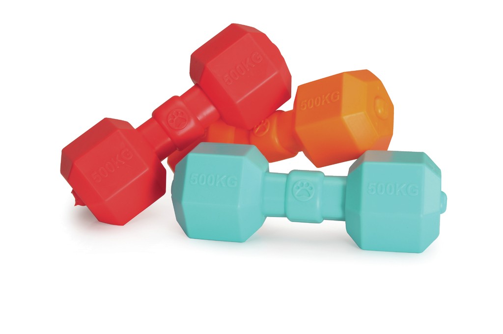 Zábavná a odolná hračka pre psa v podobe činky TPR.