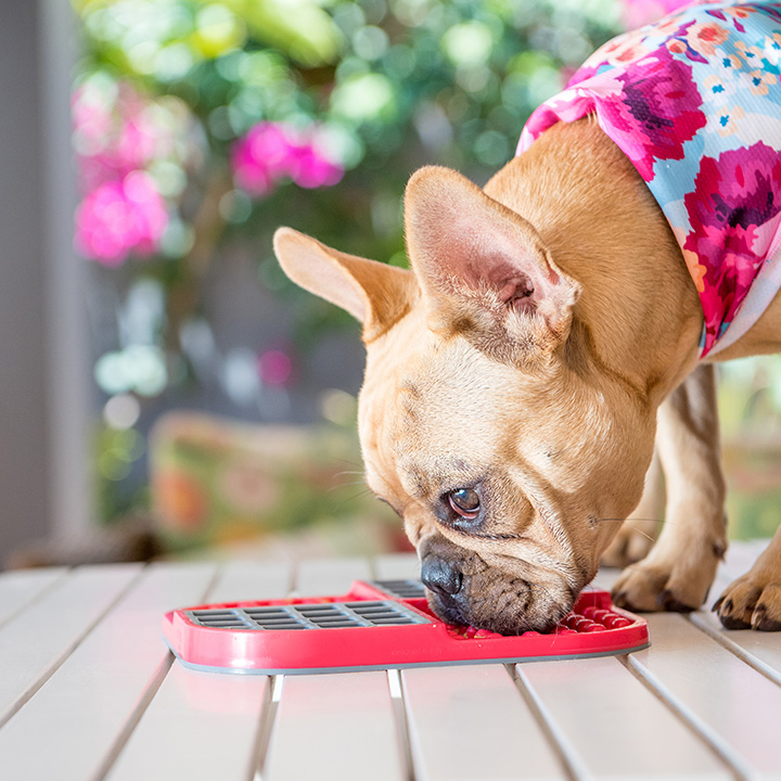 A čím hračku naplniť? Lízacie podložky LickiMat môžete naplniť niečím mäkkým, ľahko roztierateľným a chutným – psie konzervy, psie paštéty, jogurt, orechové maslo, arašidové maslo, tvaroh, KONG pasty a iné. Zaistite, aby mal váš pes vždy k dispozícii čerstvú pitnú vodu.