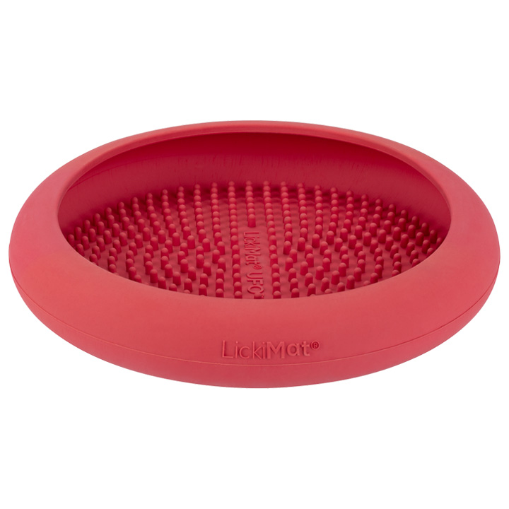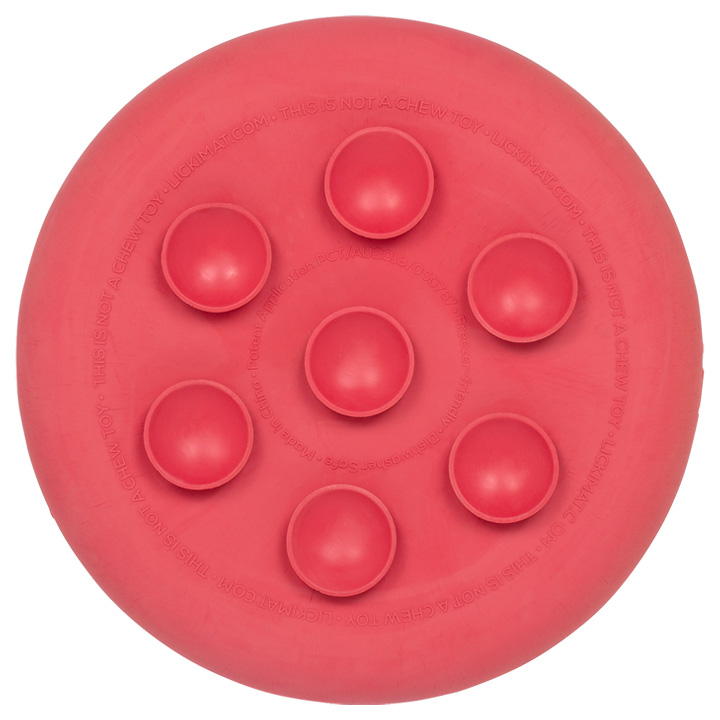 Poslúži aj ako štandardná podložka na malú odmenu, ale aj ako miska na hlavné jedlo. Vďaka vysokým okrajom nedovolí, aby jedlo vypadávalo pri lízaní z podložky na zem.