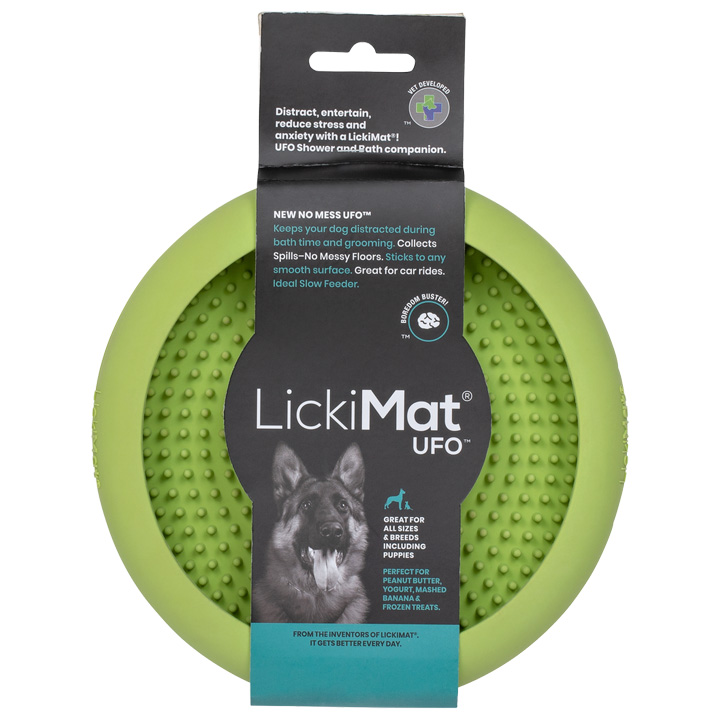 Doprajte svojmu psovi kúpeľ, ostrihajte ho, ostrihajte mu pazúriky a navyše urobte z toho skvelú zábavu s LickiMat® UFO™. Tento model LickiMat® má 7 prísaviek, takže ho môžete ľahko pripevniť na rovný a hladký povrch v kúpeľni.
