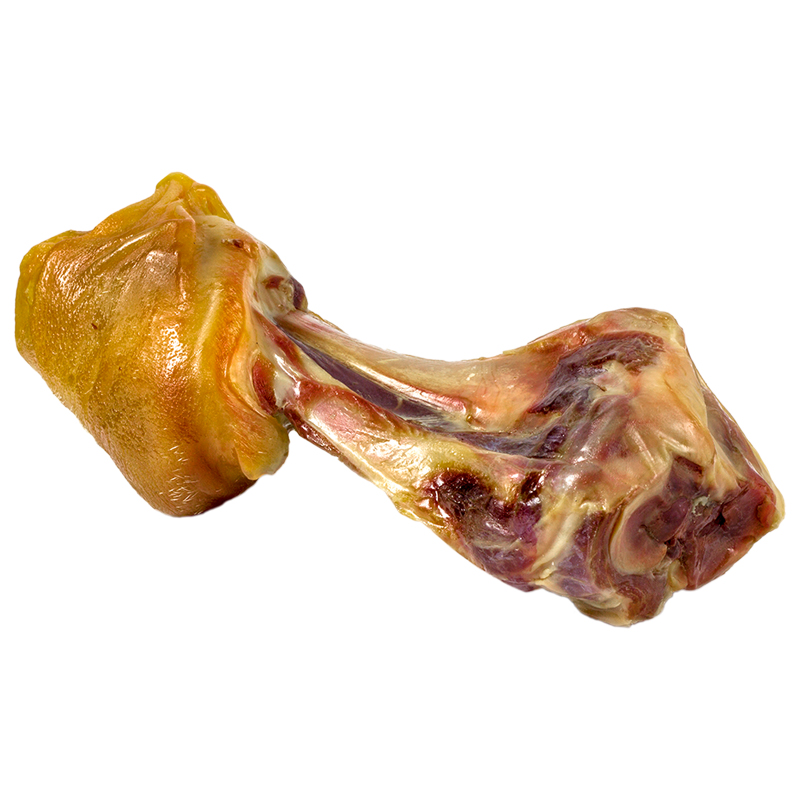 Prírodná bravčová kosť s kúskami šunky. Vhodné pre psíkov stredných a veľkých plemien. Vákuovo balené. Zloženie: 100% bravčové mäso. Analytické zložky: proteín 29,7%, obsah tuku 25,1%, hrubý popol 31%, vlhkosť 14,2%, vápnik 21381mg/kg