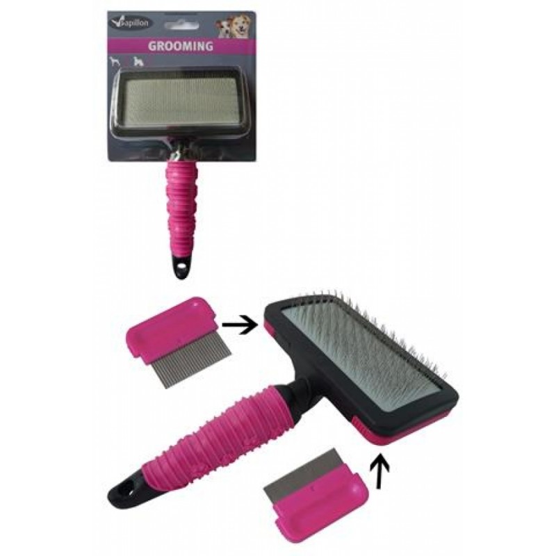 Použitie: Táto kefa je vhodná pre rozčesanie a finálnu úpravu srsti. Na stranách kefy sú dva malé hrebienky, ktoré sa môžu použiť pre finálnu úpravu na miestach kam sa kefa nedostane. Okrem iného sa hrebienky môžu použiť na čistenie kefy