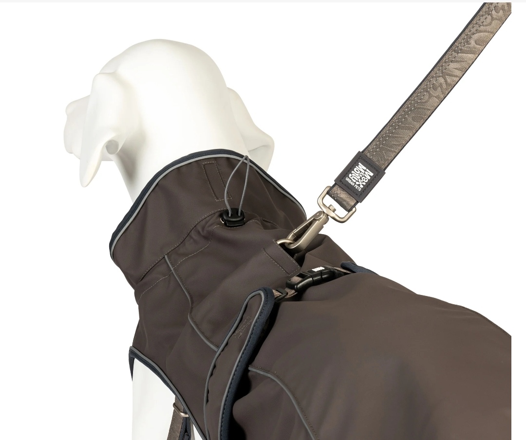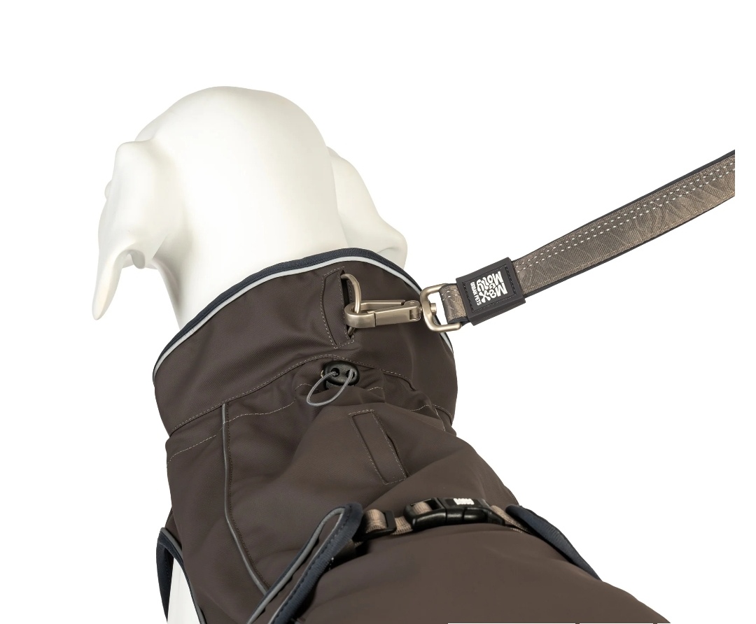 Vďaka širokému výstrihu sa váš pes veľmi ľahko nechá pretiahnuť a zároveň ušetrí vaše nervy. Pomocou elastickej šnúrky na krku si môžete upraviť veľkosť podľa vlastného uváženia. Nastaviteľný brušný popruh, ako aj elastické a nastaviteľné pútka na nohy tiež zaisťujú optimálne prispôsobenie aj pri silnom nárazovom vetre. Vodítko máte možnosť zapnúť cez dva otvory buď na postroji alebo obojku.