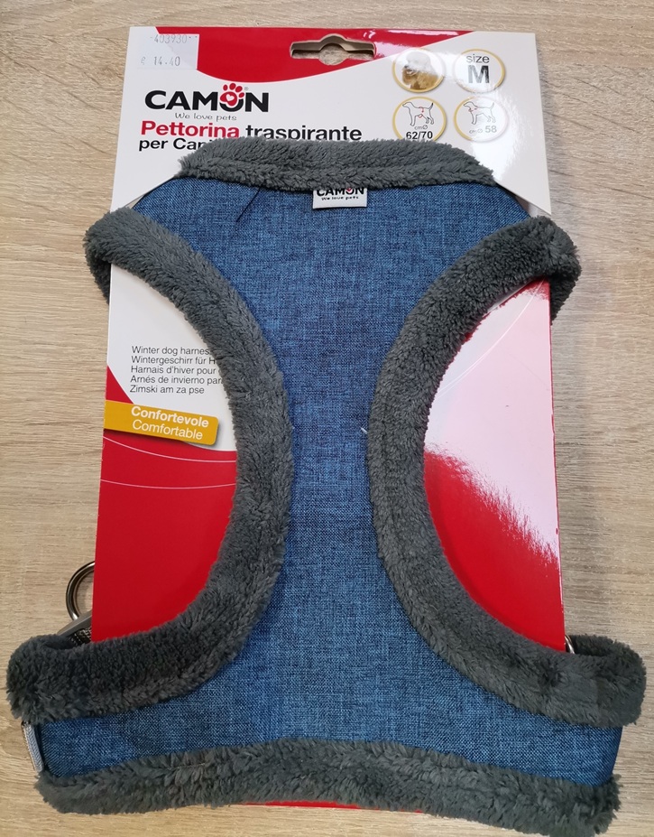 Textilný postroj s imitáciou zajačej kožušinky. Obvod krku 58cm, obvod brucha 62/70cm. Materiál:100% polyester. Ručné pranie.
