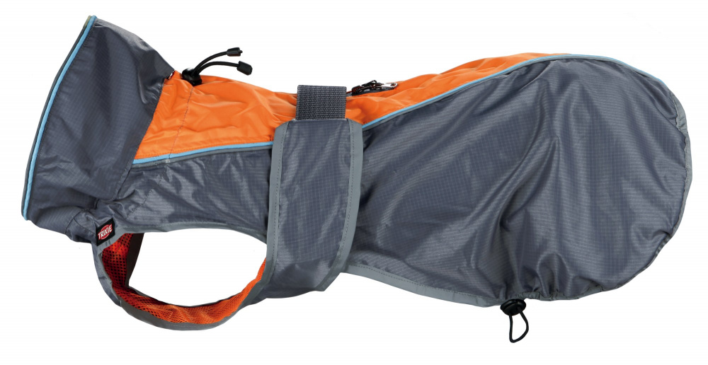 Pršiplášť Solid ľahko zapnete pomocou suchého zipsu, ľahko psíkovi sadne. Možno kombinovať s postrojom pomocou vodotesného zipsu v zadnej časti. Nepremokavá vďaka lepiacim švom a vonkajšiemu náteru Teflon®. Reflexné časti pršiplášťu pre vyššiu bezpečnosť. Optimálne prispôsobenie sťahovaním v oblasti krku a chrbta s extra vysokým golierom vďaka ktorému psíka neprefúkne. Elastické slučky pre zadné nohy.