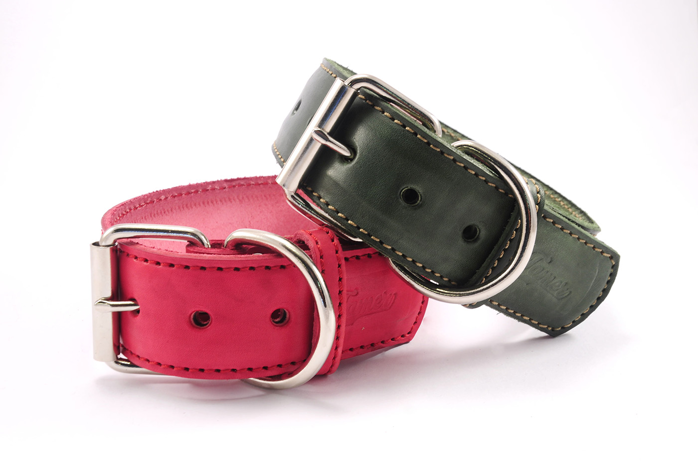 Kvalitný kožený obojok pre psov, vyrobený z hladenice z kvalitnej hovädzej kože. Šité a lepené spoje. Na farbenie obojkov sa používajú ekologické farby. Koža je impregnovaná proti farbeniu. Obrázok je len ilustračný.